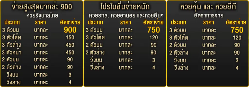 - A: UFABET มีการจ่ายรางวัลให้สำหรับหวยทุกชนิดสูงสุดที่บาทละ 1000/100 ซึ่งสูงที่สุดในปัจจุบัน และยังถอนเงินได้อย่างปลอดภัย ไม่มีจำกัดยอดการถอนสูงสุดต่อวัน